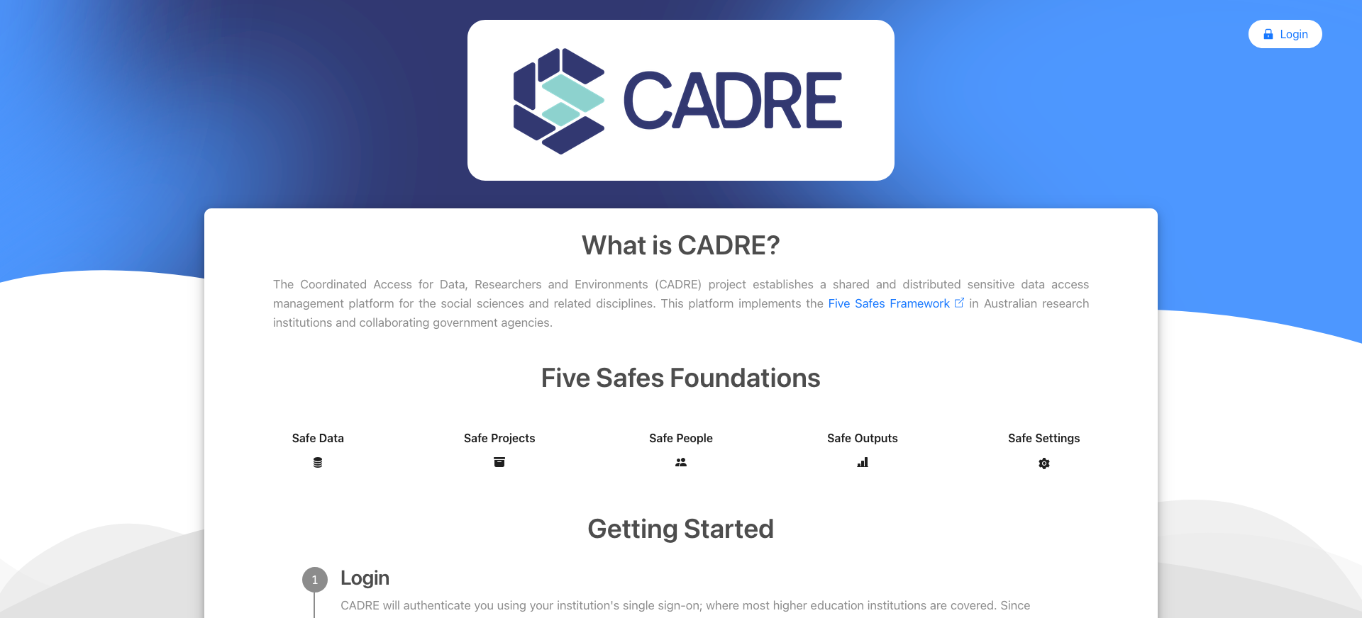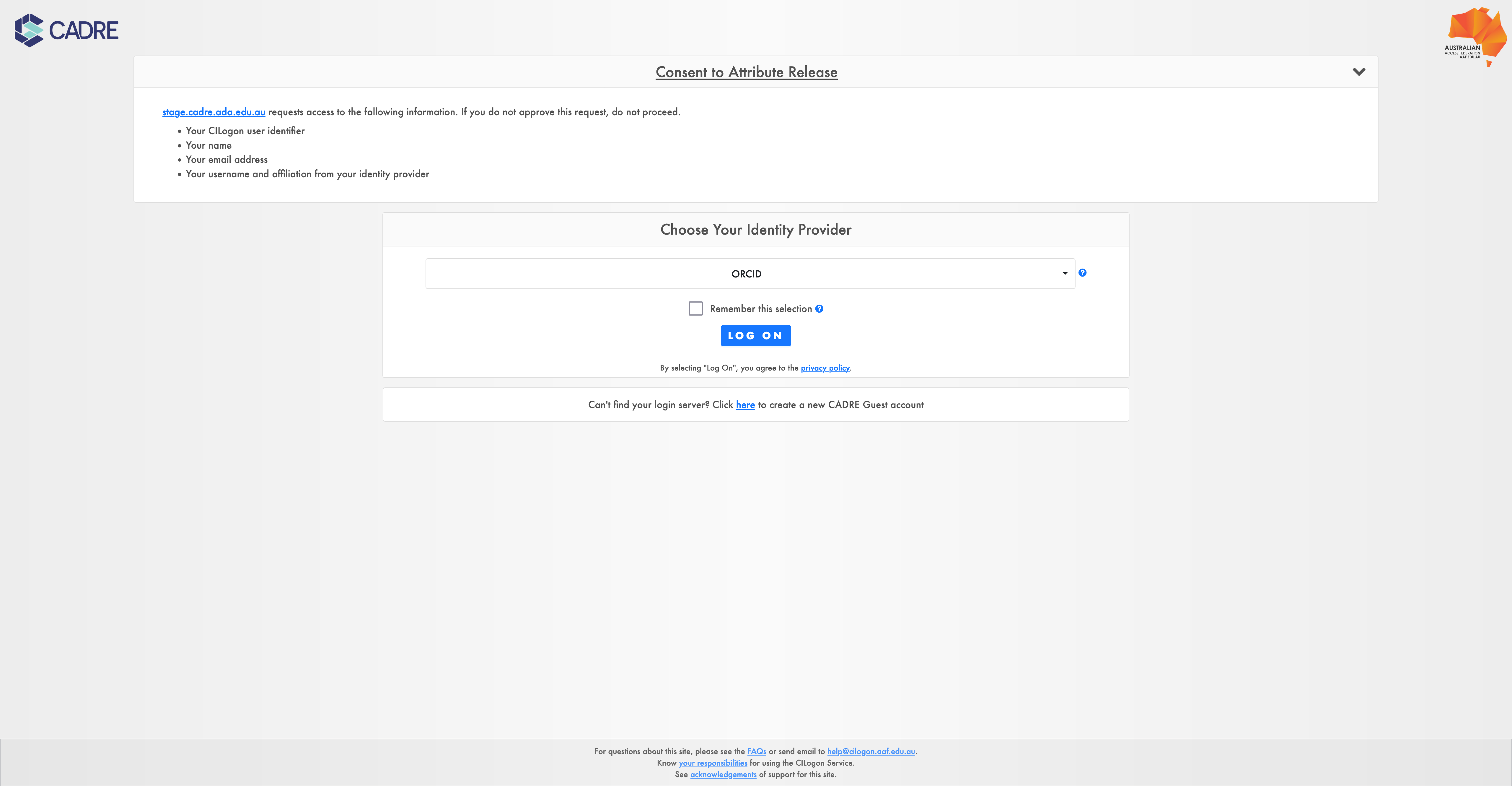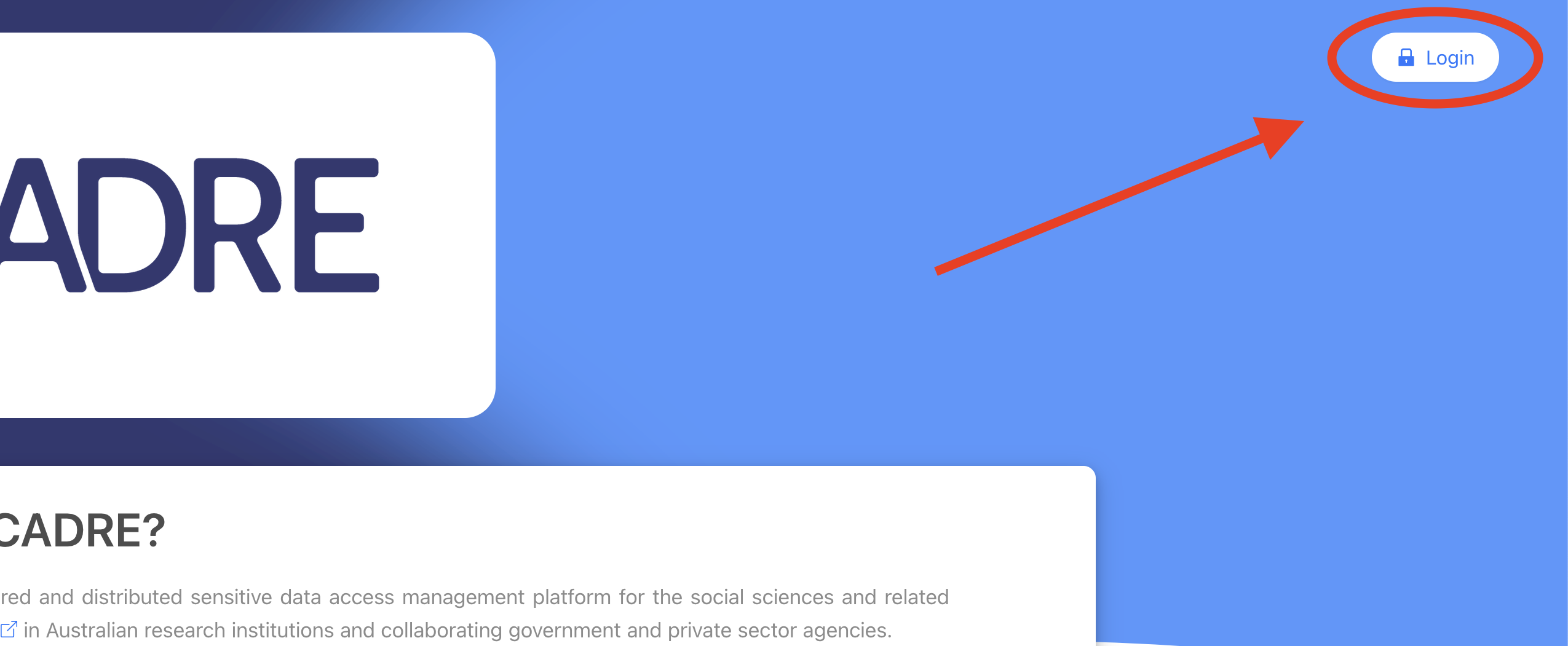 Navigate to the login page on Australian Data Archive's hosted version of CADRE.