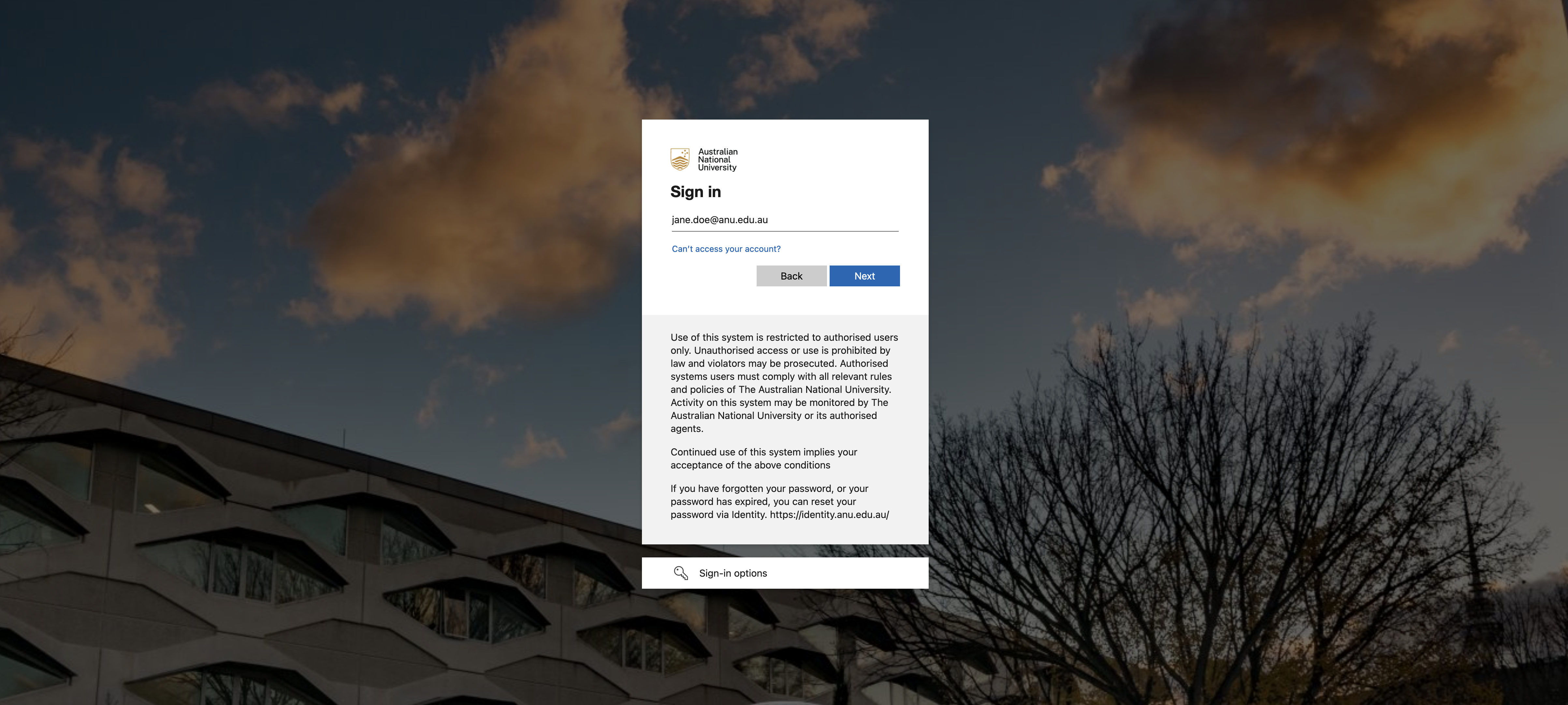 Click login to be navigated to the given institution SSO. From here, provide your email, password, and any authentication code to authenticate yourself.